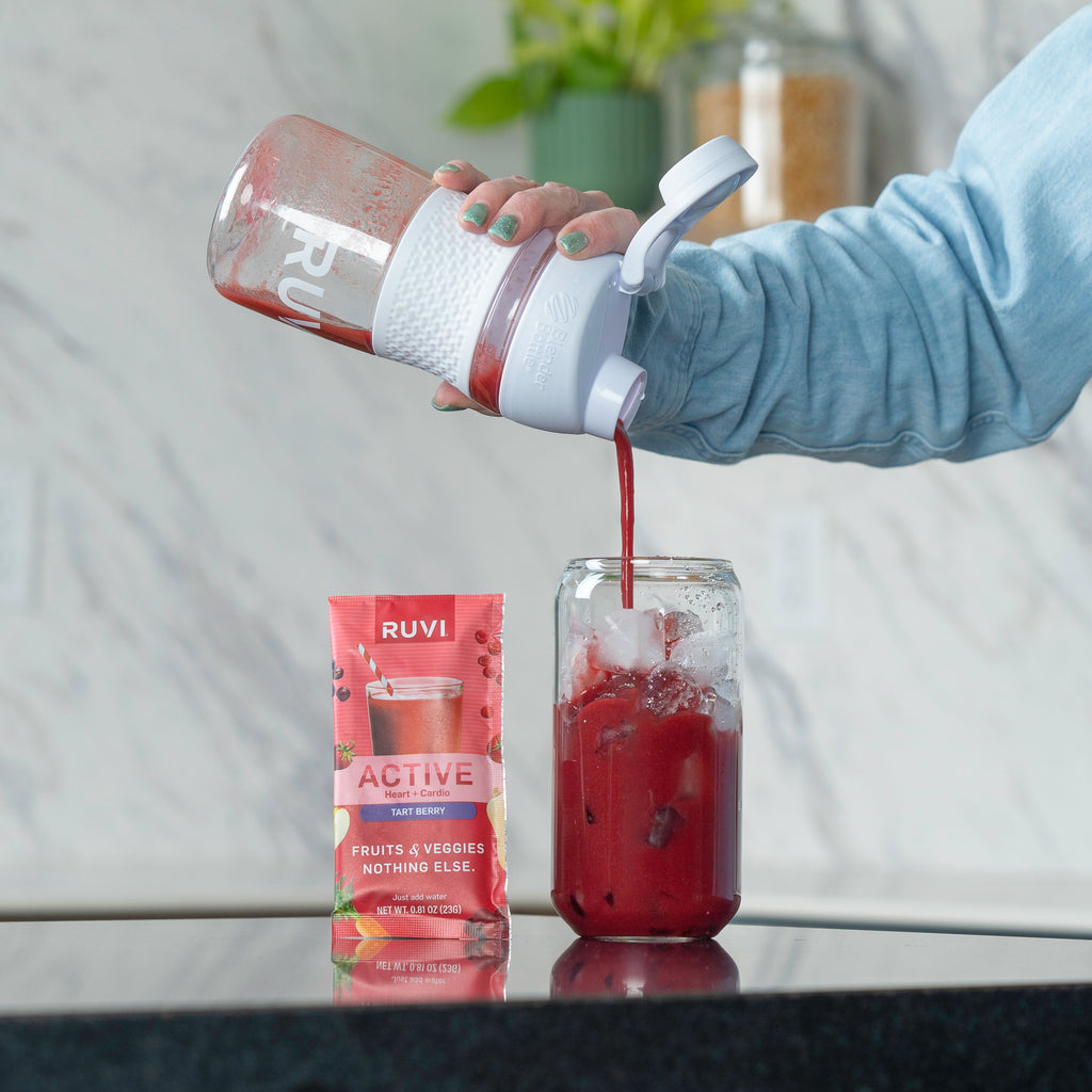 Ruvi Active freeze dried smoothie mix has 8 fruits and vegetables to support your heart and cardiovascular system, and promote recovery.
